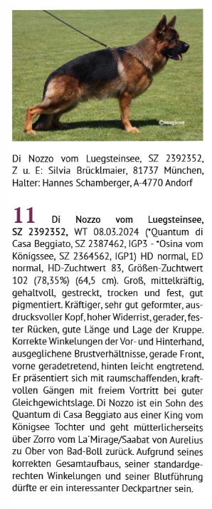 Wir sind so stolz auf unseren Di Nozzo. Er belegt in der Jugendklasse den 11. Platz in einer starken Klasse mit 104 Rüden.